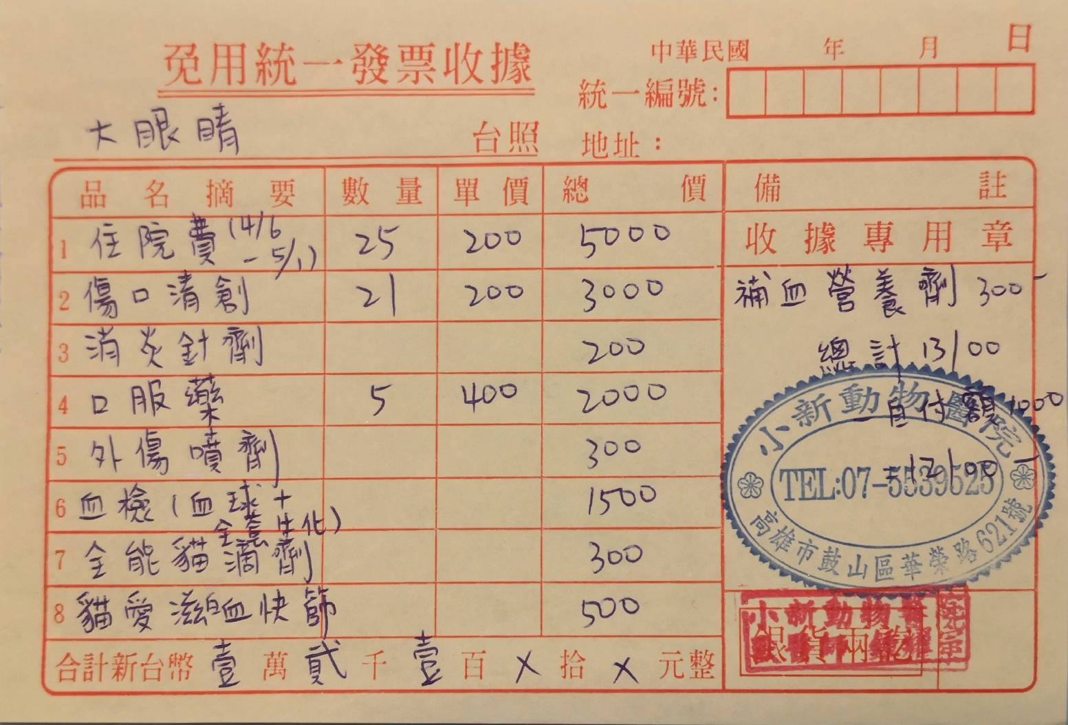 主題: 四肢腳掌水腫潰爛 申請者姓名: Ziying Fu 花色: 申請日期: 2020-05-02 23:35:11 申請者部落格: 申請者臉書網址: https://www.facebook.com/profile.php?id=100013860640359 所在縣市/合作醫院: 高雄市/小新動物醫院 治療費用: 12100元 需求人數: 28人 已結案 (2024-05-31 18:18:23) 報名人員: 孫淑敏(已付款)、Mandy Tsai、Mandy Tsai x3(已付款)、豆豆、allyn(已付款)、Bayca1209(已付款)、Ryan(已付款)、JUN(已付款)、vivian(已付款)、Wofie(已付款)、Tracy Kao(已付款)、Paulala(已付款)、陳淑蓮 x2(已付款)、Annie(已付款)、junyi(已付款)、Rachel Chiu x2(已付款)、karena(已付款)、Sky Lin(已付款)、Kitty Chen(已付款)、Wendy(已付款)、小七(已付款)、Peggy x2、An Chen(已付款)、MONSTER x2(已付款)、berry x2(已付款)、 候補人員: 動物病情說明: 您好,因為我有在幫貓tnr,這隻貓抓到時四肢只有微腫,但結紮後醫生發現足部有傷口且有更加腫脹的趨勢,所以帶去小新動物醫院請醫生治療。