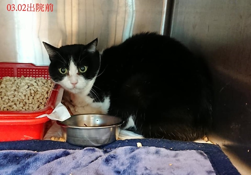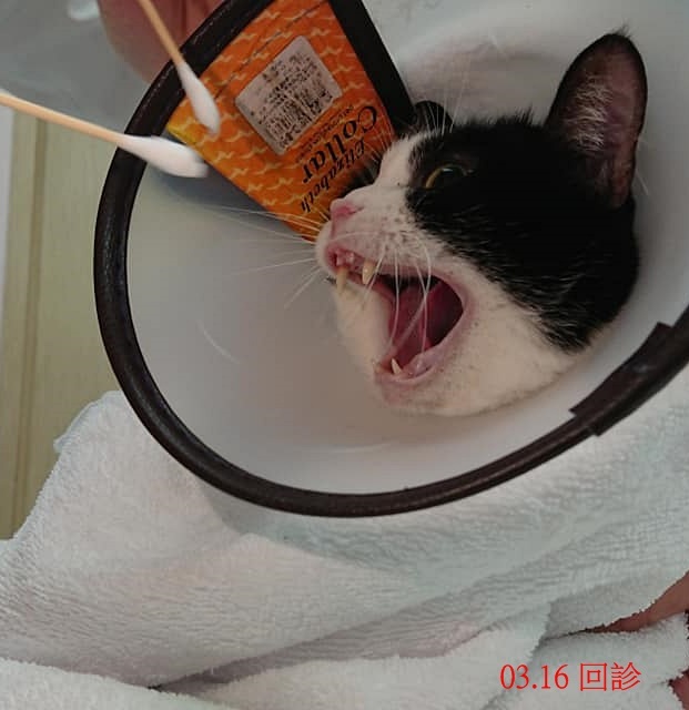 回到安養之家,照護員給好吃的肉肉安撫,就慢慢放鬆開始吃喝了,但2月15日又不吃飯,貌似嘴巴仍很不舒服,自醫院取回止痛滴劑先給圓仔媽止痛,再於2月17日回診鎮定檢查,檢查結果,口腔右後比較紅併有口炎症狀,拆除手術縫線,並施打類固醇及久安抗生素,2月24日再回診,發現手術前沒有口炎,但術後卻有口炎跡象,可能因心理壓力大有關,醫師建議先住院,需要服用調控免疫系統的抗生素,打皮下點滴和四環素,圓仔媽住院治3月2日狀況已穩定多了,便出院回家,再於3月16日回診追蹤,檢查結果,血檢大致沒問題,發炎也有緩和下來的跡象,目前圓仔媽吃喝情況有漸漸好些,照護員每天都準備她最愛吃的罐罐,希望她能吃得開心,也希望她的口腔能盡快恢復。