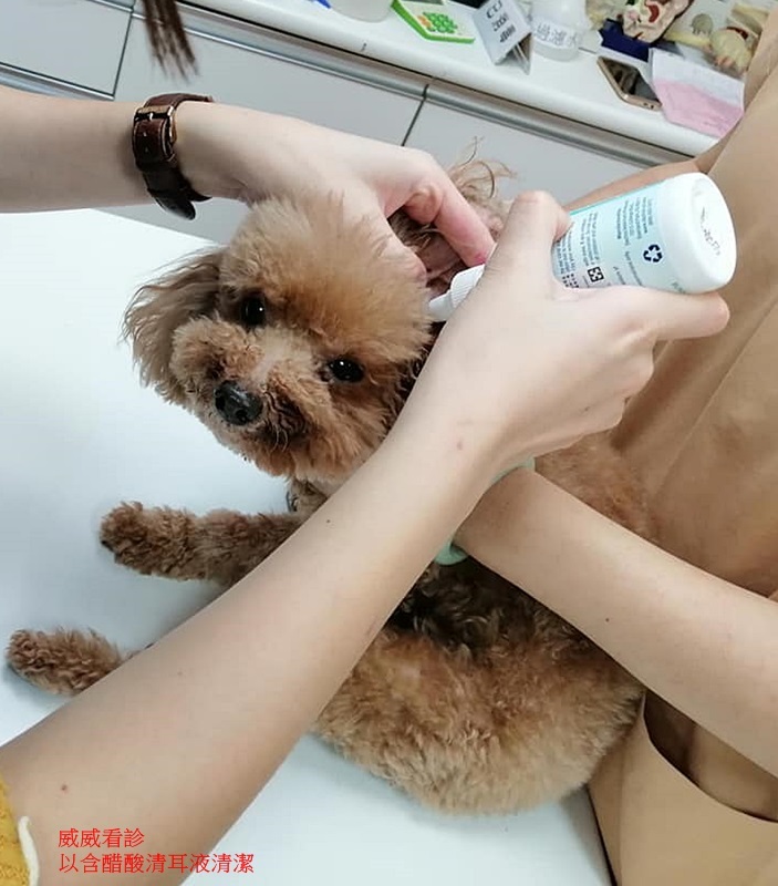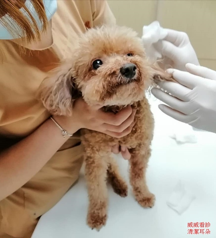 因清洗耳朵後會外圍髒髒,建議看診完再美容,或美容暫停一次。