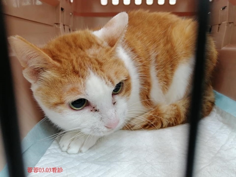 蓉蓉平時很害羞,但個性其實是很溫柔的,照護員每天都細心的呵護觀察,2020年1月時發現蓉蓉食慾似乎變差,眼睛分泌物多,因此安排就醫檢查,發現有慢性腎衰跡象,結膜紅腫須點眼藥水,也開了食慾促進寄希望幫助蓉蓉恢復食慾,照護員按照醫師指示幫蓉蓉點眼藥水,給腎臟處方食物、補充營養品,蓉蓉的眼睛分泌物明顯減少、食慾也變好,但因有慢性腎衰,需要持續追蹤,於3月3日約診檢查,體重已有上升、腎臟指數也比1月份下降,醫師認為蓉蓉有進步,只要能持續穩定進食,食促可減少並延長時間再回診追蹤。