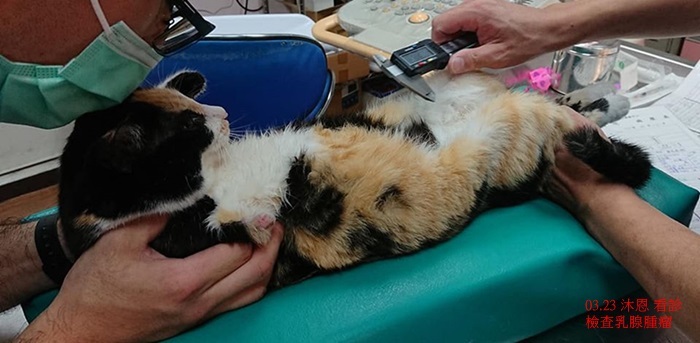 2020年3月,照護員發現阿轉乳腺邊出現小腫塊,約診沐恩進行檢查,右側第四對乳腺有兩顆0.6公分的腫塊,經由抹片化驗,結果是乳腺細胞,因貓咪乳腺惡性的機率較高,寫檢結果也無異狀,醫師建議盡早手術切除,並送病理報告檢驗。
