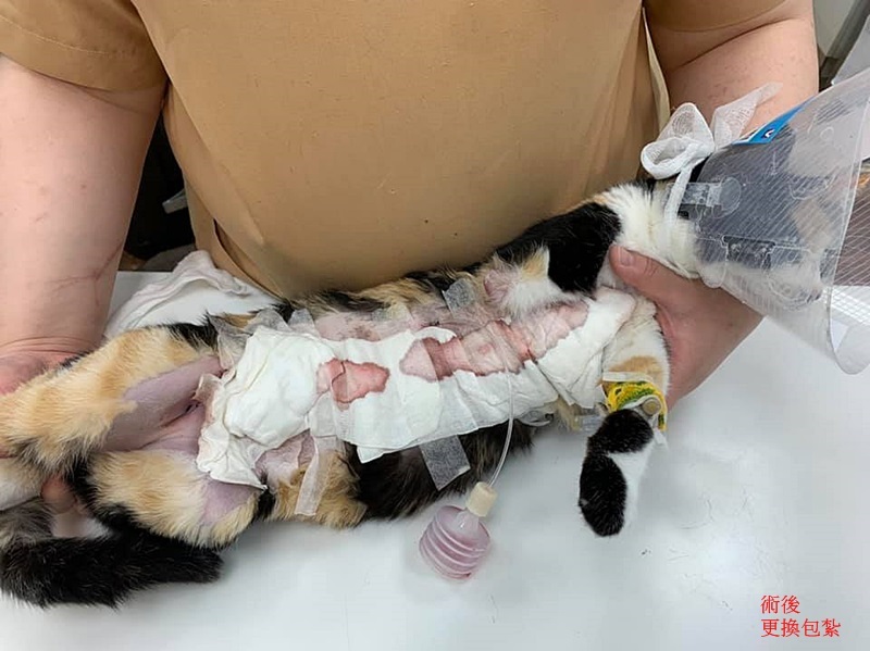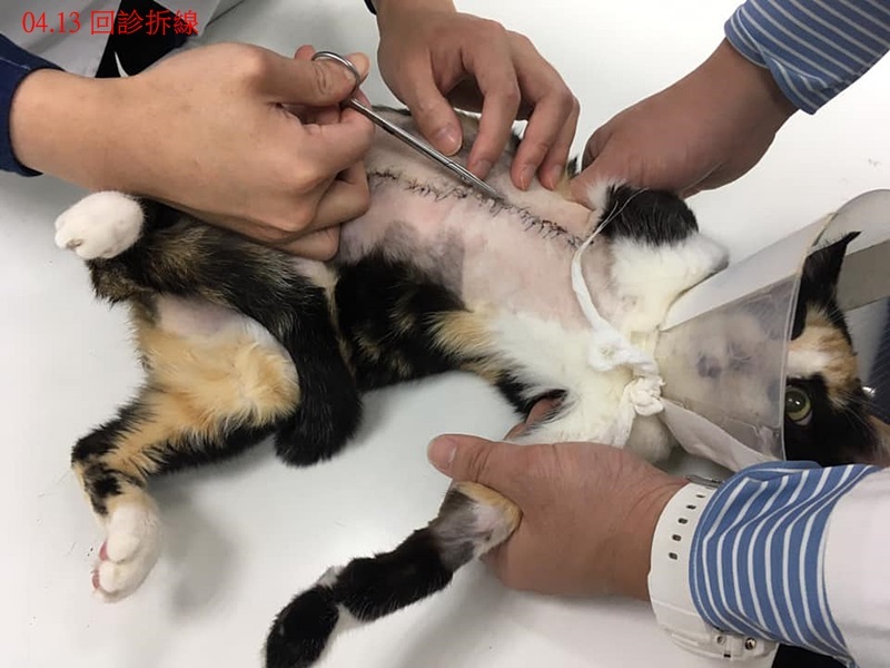 阿轉於3月30日進行手術,因術後裝置引流球引出血水,須住院觀察數日,大家都很擔心阿轉,還好手術順利,加上阿轉個性實在太親人,住院期間照樣撒嬌個不停,因此恢復得很順利,4月7日因已無血水便辦理出院,回到安養之家的阿轉,仍需戴頭套及住籠子以保護傷口,至4月13日回診拆線,並同時看切片的病理報告,醫師檢查拆線後,只餘些細小的傷口,所以頭套還要再帶2天,但病理報告結果是惡性的腫瘤,這實在讓人非常難過,雖然阿轉的外貌及行為還是像少女般的可愛活潑,但其實阿轉的年紀已約15歲了,擔心惡性腫瘤的醫療會對她的身心造成不良影響,所以協會會努力找出對阿轉最好的醫療方式,讓阿轉持續過著有品質的快樂生活。