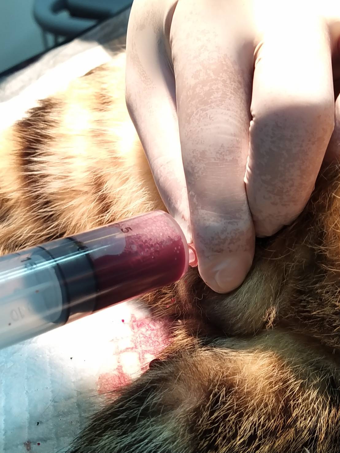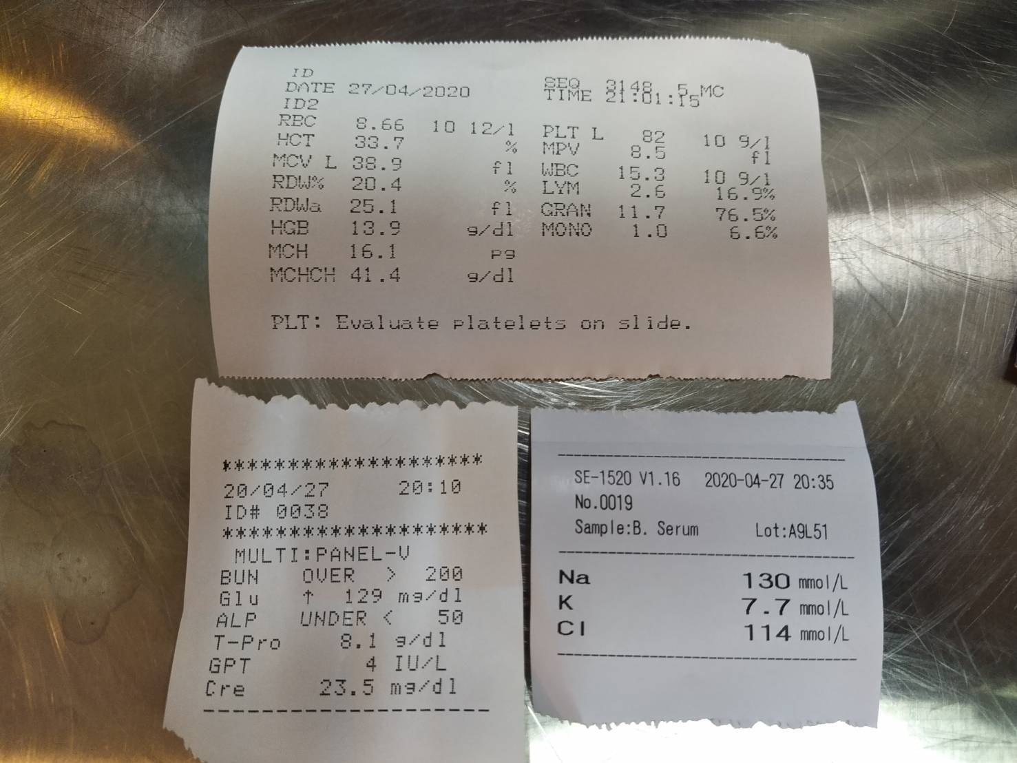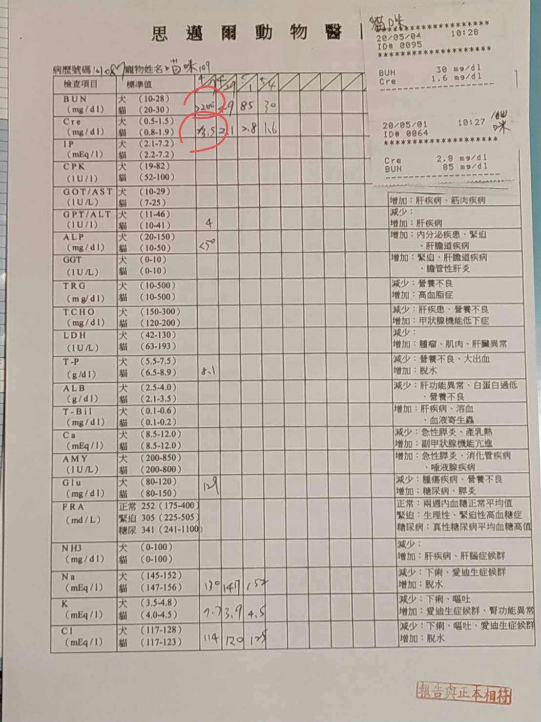 5/4血檢值正常,貓咪的精神良好,食慾也正常,所以排定隔日再清一次膀胱,及結紮