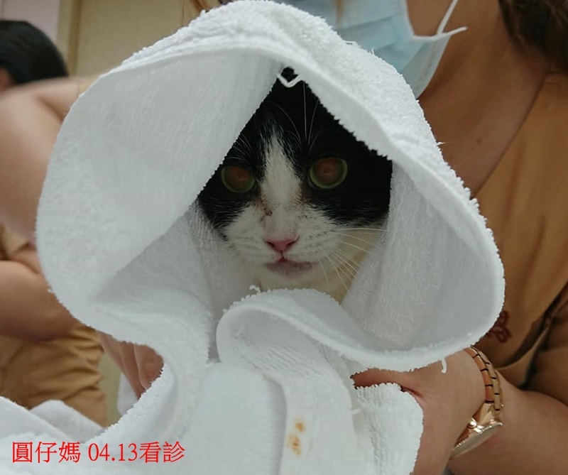 圓仔媽是2014年從收容所帶出的貓,感染嚴重病毒,當時即將臨盆卻有嚴重的鼻氣管炎,住院後數天生下了4隻小貓寶寶,但相繼當了小小天使,圓仔媽不吃不喝10幾天,完全靠灌食和點滴支撐,在醫院治療了近2個月才狀況穩定,接回安養之家。
