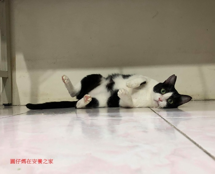 照護員每天都細心觀察也準備她最愛吃的罐罐,目前圓仔媽吃喝情況都很穩定了,沒有出現摳嘴巴的大叫,還會開心翻肚子,模樣好可愛。