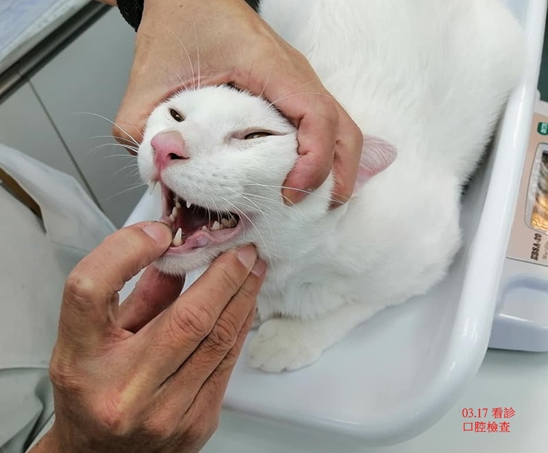 口腔檢查持平,觸診檢查,下巴及後腳的淋巴結仍然很腫。