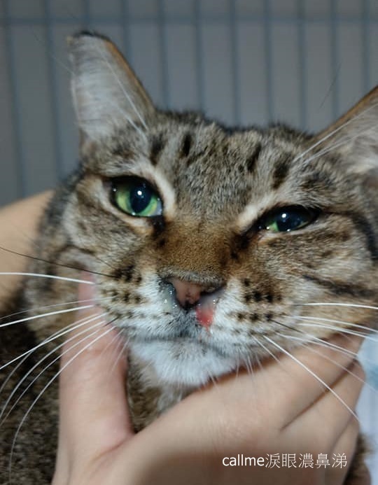 經檢查,callme有很嚴重的呼吸道疾病,鼻腔不斷流出黃綠色的鼻膿,X光影像見到肺部內支氣管的部分已呈現白濁,整個感染發炎的範圍相當大,呼吸時有呼吸道雜音,鼻涕還出現血絲,又因淚腺被阻塞,雙眼淚眼不斷。