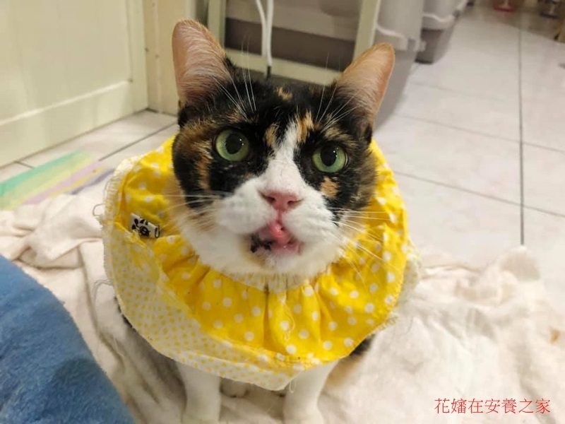 在協會生活幾年下來,受到無微不至的呵護,花嬸越來越粉嫩可愛,還成為協會的專屬代言貓,許多義賣產品都可以看到花嬸的可愛臉蛋,花嬸很有個性,拗起來的模樣看了又好氣又好笑,讓人非常喜愛。