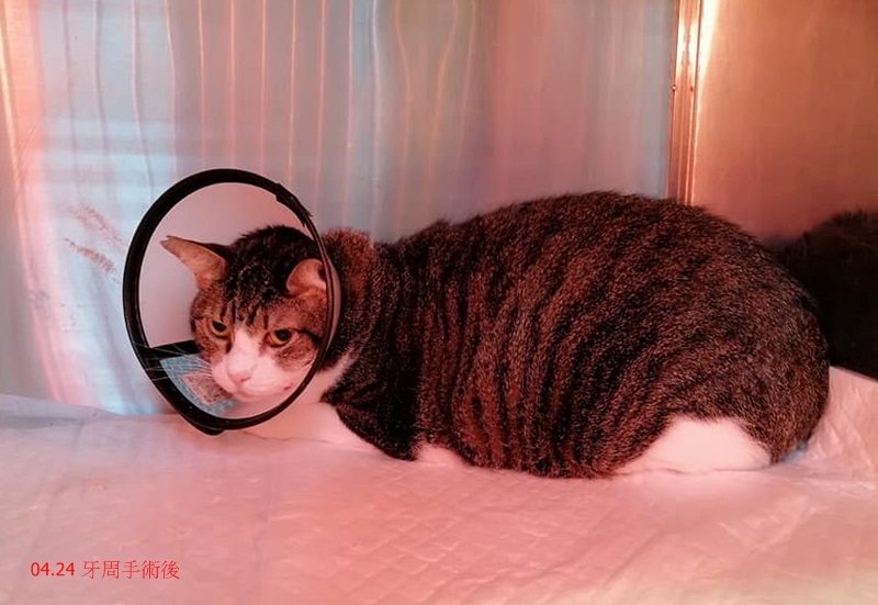 為了觀察術後情況,安安先住籠一週,戴上頭套讓安安有些不開心,但口腔的不適消失,讓安安很快的就恢復了食慾,一週後自由活動,安安更是開心許多,目前精神食慾都很穩定。