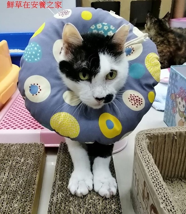 鮮草住院治療了一個多月,進行血檢、二合一檢驗、並完成結紮、洗牙,狀況較為穩定後便接回安養之家。