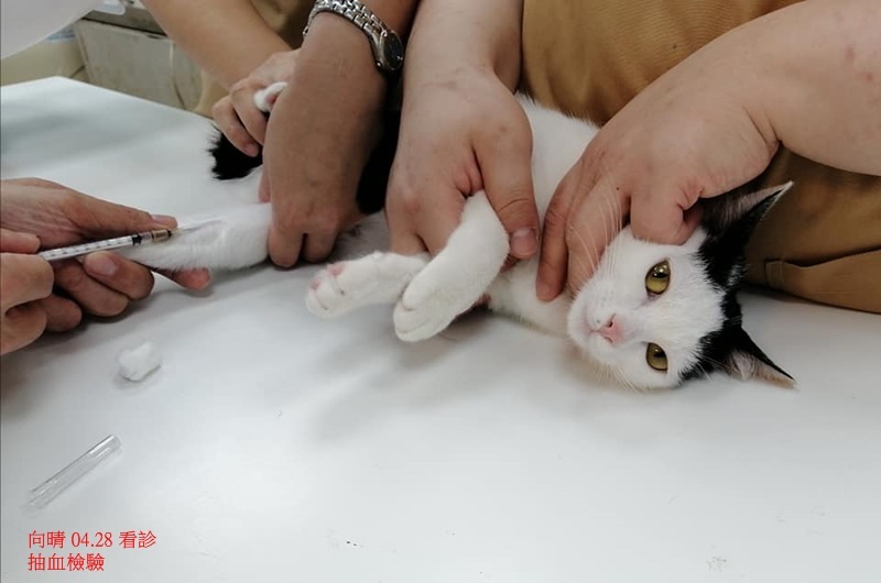 向晴小小年紀歷經流浪辛苦生活又受了傷,健康情況不是很穩定,肝臟指數一直偏高,還有淋巴結腫大,常有腹瀉情形,除了食物尚須小心調整,並須配合向醫師指示定期回診,每天要吃藥、打皮下輸液。