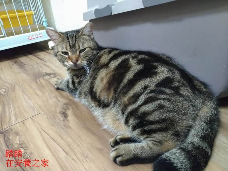 踏踏是2014年志工在五股收容所看到的被遺棄的貓咪,當時她隔著籠子不停的磨蹭,很撒嬌的對著志工喵喵叫,經志工詢問所方人員,得知踏踏是因為癲癇而遭到主人棄養,志工於心不忍,便將她接出送醫院治療。