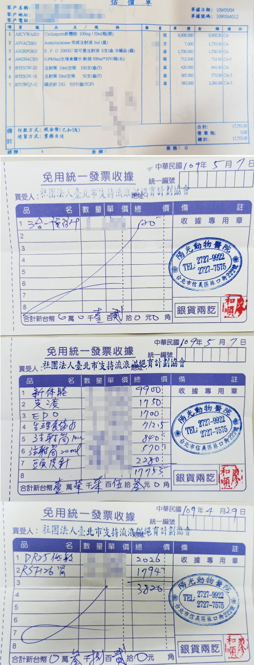 主題: 2020 4/4~5/7醫藥用品 申請者姓名: 臺北市支持流浪貓絕育計劃協會 花色: 申請日期: 2020-05-08 18:39:21 申請者部落格: 申請者臉書網址: 所在縣市/合作醫院: 台北市/其他院所醫助專案(醫院請先MAIL溝通) 治療費用: 95255元 需求人數: 205人 已結案 (2024-05-31 18:16:34) 報名人員: 台北港引水人辦事處 x2(已付款)、Hsien Hsiang Huang(已付款)、嚕咪(已付款)、Andrea Hsieh(已付款)、Mindy Kan x2(已付款)、蔡尼克 x2(已付款)、陳芃如(已付款)、Yuyu Yan(已付款)、鄧晴勻 x2(已付款)、吳芳儀(已付款)、hsinkai0407 x2(已付款)、Vic Wei(已付款)、Fan Chiaki、Carolhann(已付款)、mandy x2(已付款)、兔曉靜(已付款)、Bobo Li x4(已付款)、Janet(已付款)、Janet(已付款)、妮妮(已付款)、藍田 x2(已付款)、Miso(已付款)、Wennie Tseng x2(已付款)、amberkuyin(已付款)、SY Liou(已付款)、Chia-yu Michelle Mei x2(已付款)、Stacy SHIH x6(已付款)、許心琤(已付款)、EL x2、EL x2(已付款)、溫芯苡 x2(已付款)、阿狐(已付款)、kerina07(已付款)、kerina07、Arter(已付款)、李喵喵 x10(已付款)、tofu x2(已付款)、Chin Fang Lai x3(已付款)、leanne99 x6(已付款)、Krystal(已付款)、簡佑銘 x2(已付款)、白婷 x2(已付款)、肚臍(已付款)、Andrea Hsieh(已付款)、陳翔(已付款)、郭默 x2(已付款)、Fox Yo(已付款)、妮妮 x2(已付款)、tofu x6(已付款)、張力軍(已付款)、小茵(已付款)、Stacy SHIH x2(已付款)、黑鼻 x2(已付款)、Glow x4(已付款)、閒雲野鶴 x2(已付款)、簡佑銘(已付款)、Emily Yen x2(已付款)、小花兒(已付款)、綿羊怪客(已付款)、周星星(已付款)、無名氏(已付款)、Born 2 Her cafe、李柏(已付款)、EL(已付款)、rei x2(已付款)、無名氏(已付款)、洪于涵(已付款)、Emily Yen(已付款)、Amelie Chiang x10、Amelie Chiang x10(已付款)、Yu Keng Tsai(已付款)、洪晟聞(已付款)、chris71620 x2(已付款)、a-song x2(已付款)、捲捲米花(已付款)、Susin Chen(已付款)、Susin Chen(已付款)、Susin Chen(已付款)、幽(已付款)、misey x2(已付款)、Emily Yen(已付款)、Kitty Bear(已付款)、Nicole Hsiao(已付款)、洪凱威(已付款)、雅雅 x2(已付款)、a-song x2(已付款)、無名氏(已付款)、Lindsay Tseng(已付款)、Emily Yen(已付款)、白婷 x2(已付款)、Martin Chen(已付款)、rei x2(已付款)、黃怡慈(已付款)、林嘉慧、林嘉慧(已付款)、謝佩璇 x2(已付款)、Joan(已付款)、a-song x2(已付款)、黛咪(已付款)、bear tea x2(已付款)、Chiayun Lee(已付款)、Little Cat Chang(已付款)、無名氏(已付款)、Martin Chen(已付款)、Elaine x2(已付款)、Stacy SHIH x2(已付款)、Joshua(已付款)、Joshua(已付款)、咚咚和申語霏 x2(已付款)、Joan(已付款)、a-song x2(已付款)、Nadia x3(已付款)、Ying Ying Lee(已付款)、Kitty Bear x2(已付款)、Peichun(已付款)、陳昱先 x2(已付款)、Kate HO(已付款)、Ting Yu x14(已付款)、 候補人員: 動物病情說明: 協會安養之家有許多貓咪在得到救援前,曾是受了重傷或患有疾病重症,拖著一身病痛在街頭或人煙罕至的偏僻地區掙扎著求生存,又或是遇到無良主人不願意花費為他們醫治因而被棄養,在得到救援後經過漫長的醫療,仍須要長期終身的醫療用藥,為了節省開銷,慢性病貓咪的藥品、保養品皆向配合的醫院採購,工作人員再依照醫囑指示使用。