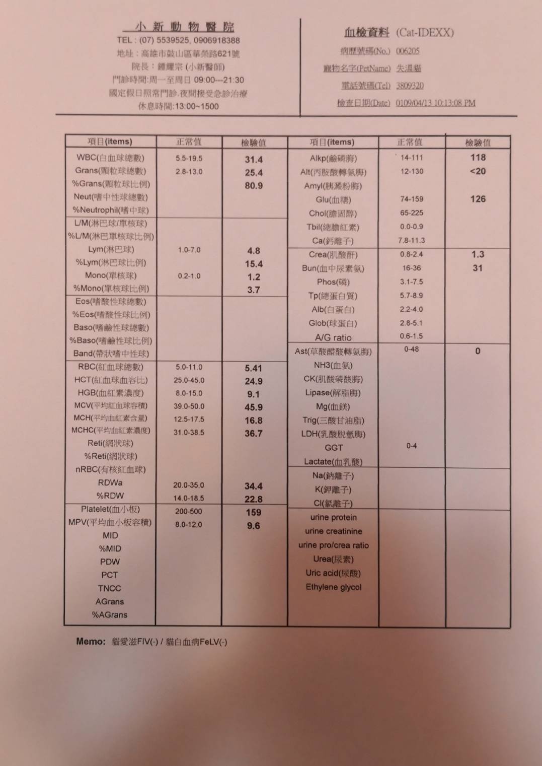 主題: 被車撞到的小貓平安 申請者姓名: 梁仕宏 花色: 申請日期: 2020-05-15 15:12:04 申請者部落格: 申請者臉書網址: 梁仕宏 所在縣市/合作醫院: 高雄市/小新動物醫院 治療費用: 5000元 需求人數: 22人 已結案 (2024-05-31 18:16:25) 報名人員: philtery x10(已付款)、艾曼達、艾曼達 x7、艾曼達 x4(已付款)、粉圓(已付款)、派派 x5(已付款)、superwu、superwu(已付款)、Candice(已付款)、 候補人員: 動物病情說明: 安安是隻約三個月大的小賓士,可能是年紀太小不會過馬路,又或是因騎士沒注意而撞到牠,牠被撞後緊張逃進路邊診所,好心的工作人員洽好是社團貓友因而在社團求援,由於案發地在我家附近,通報時間又是4月13日晚上近9點,時間非常緊迫,怕醫院近關門時間,所以我立刻到現場救援並聯絡醫院等我將牠送醫。 動物近況說明: 安安在醫院積極幫忙治療下,經過兩三天已脫離險境,身體狀況也好轉,但醫院再次觀察她,卻發現可能因為車禍關係產生赫尼亞現象,建議第一階段住院完成後休養2-3週再進行腹腔修補手術。在她住院期滿先行出院安置期間,她變的非常可愛親人,中途點也幫她洗澡整理,也積極幫她找家。非常值得慶幸的是,有好心的家庭願意認養,而且她的赫尼亞現象也持續改善,所以再帶她回醫院複診,確認修補手術可合併日後結紮一起進行。感謝協會,醫院,大家的幫忙,讓她度過被撞可能失去生命的難關,找到她未來的幸福。