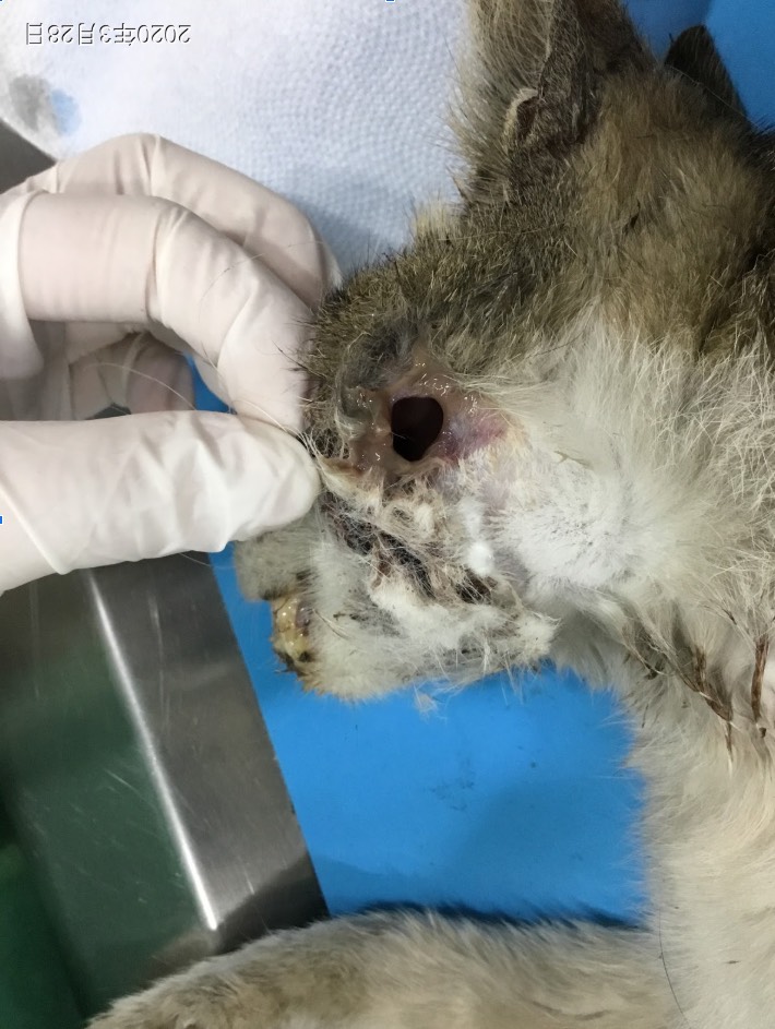 3月27日時,發現傷口變得非常嚴重,臉頰不斷流著混著組織液的血,精神狀況也很虛弱,馬上緊急送醫。