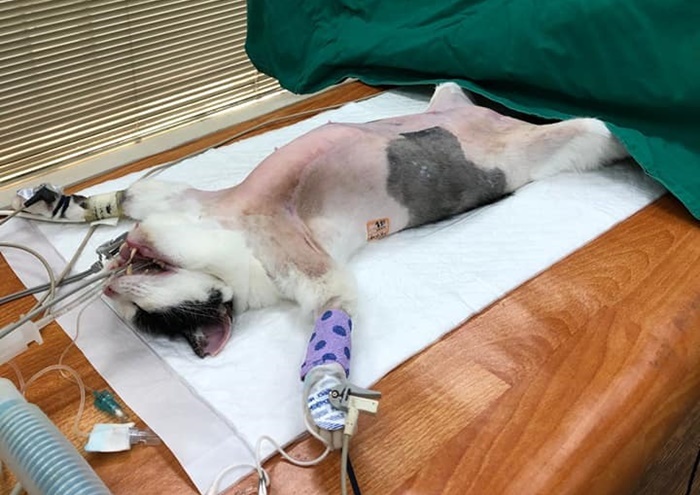 2020年4月間,照護人員發現neko的肚子乳頭旁有傷口且流血,經回報後4月13日由台北工作人員前往接至台北就醫。