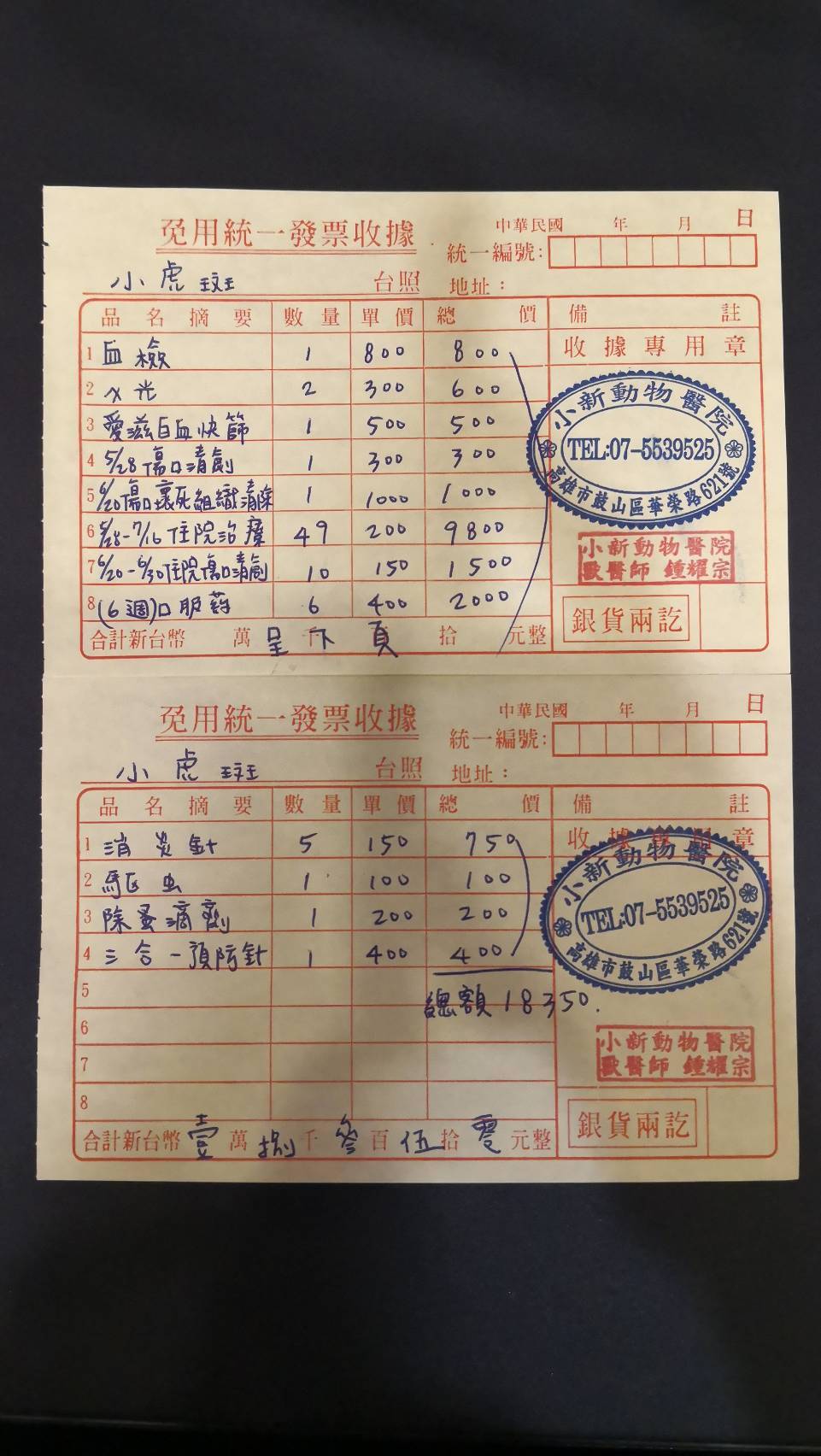 主題: 感染腳掌腫大的小虎斑 申請者姓名: 張菱予 花色: 申請日期: 2020-07-19 16:01:00 申請者部落格: https://www.facebook.com/clyanal 申請者臉書網址: https://www.facebook.com/clyanal 所在縣市/合作醫院: 高雄市/小新動物醫院 治療費用: 18350元 需求人數: 43人 已結案 (2024-05-31 18:15:34) 報名人員: 黃茂強(已付款)、Panda Song x2(已付款)、Panda Song x2、Aimee Chen、Ivy(已付款)、Tiffany(已付款)、AJu x2(已付款)、小乖(已付款)、ICheng Hu x2(已付款)、Ting Ju x2(已付款)、瑞妮(已付款)、kei(已付款)、無名氏(已付款)、雲荻(已付款)、May x4(已付款)、儒曉 x2(已付款)、儒曉 x2、柴犬(已付款)、俊藤劍(已付款)、艾曼達 x2(已付款)、Mido、Mido(已付款)、Shelley Hu(已付款)、Rene(已付款)、Lulu(已付款)、Wei(已付款)、Ikea(已付款)、Sofi lo x6(已付款)、謝小姐 x2(已付款)、李瓶(已付款)、小玉(已付款)、kino(已付款)、 候補人員: 動物病情說明: 下著大雨的午後,兩隻可憐的小虎斑在車子下喵喵叫,費了一些功夫撈到他們,發現其中一隻的腳掌異常腫大,趕緊送院治療,希望能控制感染不要再讓範圍擴大∼