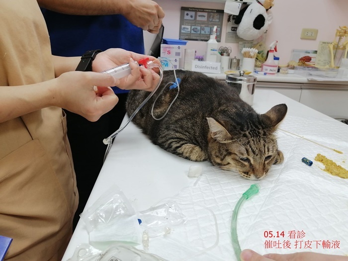 吐出來後 醫師打一劑皮下解掉止吐 及皮下輸液、觀察半小時