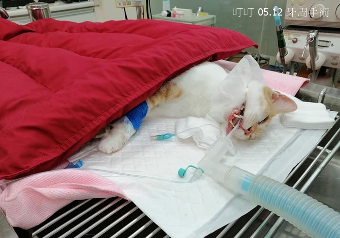 噹噹的情況是牙齦炎無口炎,須進行牙周手術拔牙,同時拍齒科X光查看有無殘留牙根。
