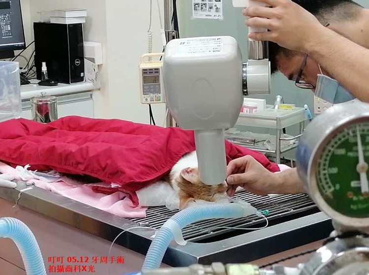 叮叮有嚴重的齒吸收病,今手術共拔10顆牙齒,術前的X光檢查,上下犬齒牙根狀況還良好所以保留未拔。