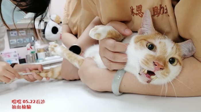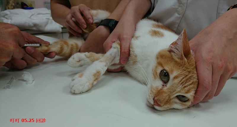 5月17日大湖照護員發現噹噹也出現嘴巴不適的情況,因此於5月20日將噹噹接至台北,並於5月22日就醫檢查,與叮叮一樣也是有牙周病、牙結石,血檢結果沒有異常,醫師安排於6月1日進行牙周手術,術前須先吃抗生素。