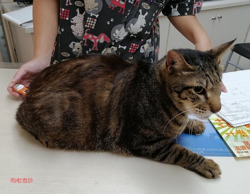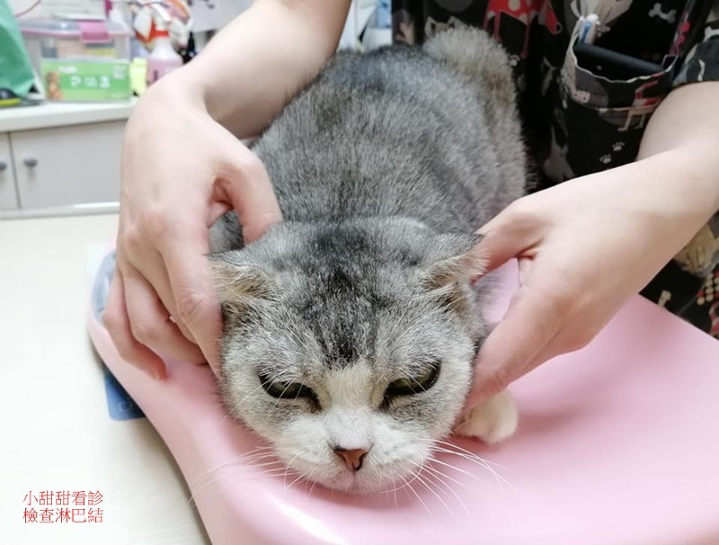 小甜甜有一點點清澈鼻水,醫師說明,小甜甜因品種貓咪原故,鼻子容易阻塞而張嘴呼吸,就容易吸入空氣,因此脹氣問題比較難很快根治,所以脹氣藥要吃長期,也就不需要太密集拍X光。