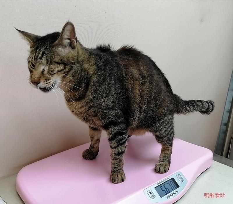 聽診檢查,肺部很乾淨,體溫正常、體重有增加,蔡醫師說雖然不能確定嗚啦體重回升是灌食結果還是自己食慾有進步,但針對細菌所開的用藥應該還是有些效果,再觀察鼻涕有否逐漸變稀、自主進食情況有否進步。