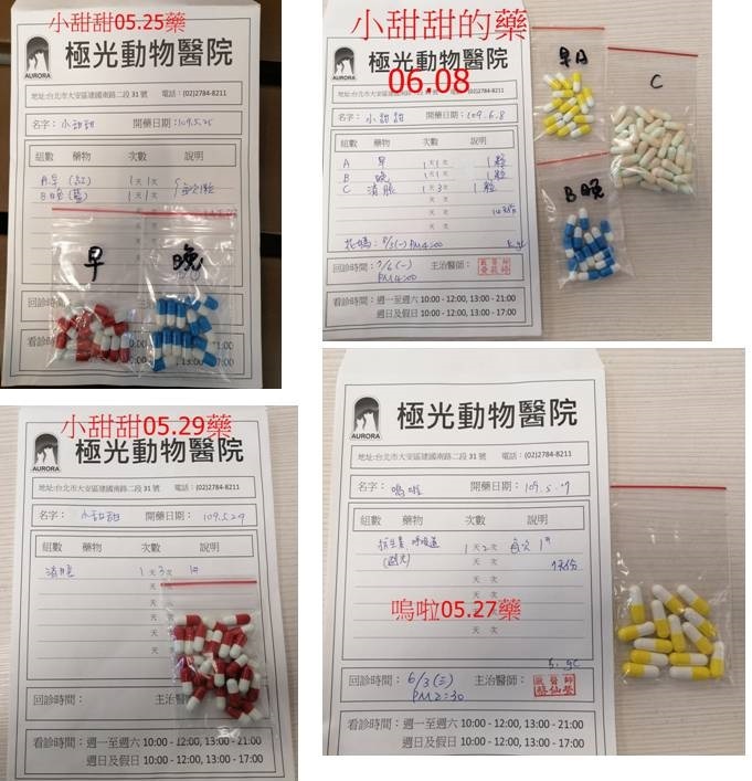 2020年4月間照護元發現小甜甜側面看起來肚子很鼓,經X光檢查發現有胃脹氣問題,醫師認為須服用一段時間的消脹藥,每兩週藥吃完就要回報再取新藥吃,目前脹氣情形已改善很多。