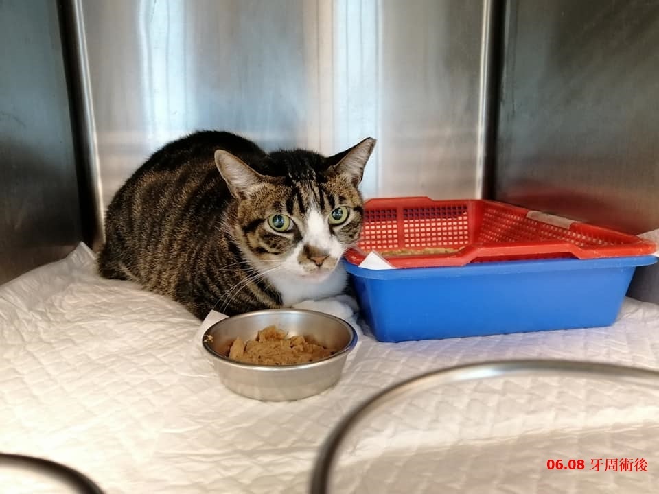 阿良於昨天6/8進行牙周手術,有幾顆牙齒牙根較深使得手術時間延長一些、麻醉甦醒時間較晚,及術前腎指數較高,因此留院一晚,今天情況已較穩定也有進食,可出院照護。