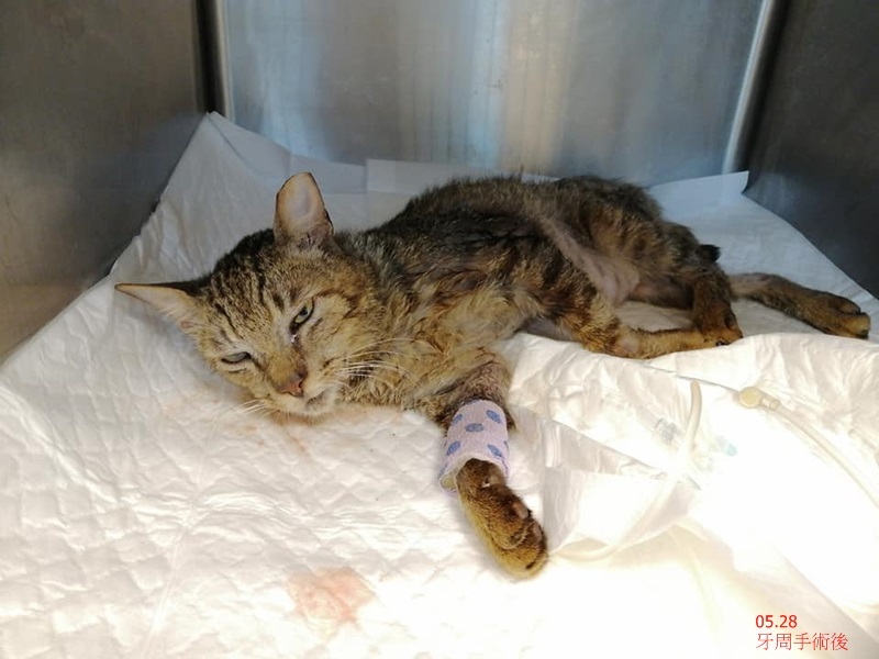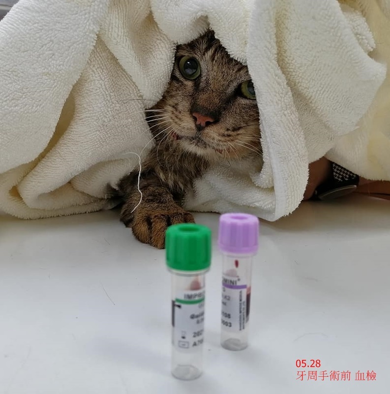 主題: 口炎齒吸收病要牙周手術的虎生 申請者姓名: 臺北市支持流浪貓絕育計劃協會 花色: 申請日期: 2020-07-09 02:03:41 申請者部落格: 申請者臉書網址: https://www.facebook.com/SupportTNR/ 所在縣市/合作醫院: 台北市/沐恩動物醫院 治療費用: 39800元 需求人數: 87人 已結案 (2024-05-31 18:14:39) 報名人員: Bear x2(已付款)、De Rai Lai、Helena x2(已付款)、劉玉婷(已付款)、OLivia(已付款)、林螢逸(已付款)、Zachary Hsu(已付款)、林桑(已付款)、江小櫻 x4(已付款)、安小就(已付款)、TKC x2、TKC x2(已付款)、Alumi Lu(已付款)、貓吉(已付款)、Inj、Inj、Yi-Yun Wu(已付款)、Nicole Hsiao(已付款)、p x2(已付款)、kathy x2(已付款)、黃丫丫 x3(已付款)、福祿壽(已付款)、Joye x2(已付款)、Fran Cheng(已付款)、Celine Lin x4(已付款)、kathy x4(已付款)、瑪莉貓(已付款)、隨風在飛 x2(已付款)、Iris Chen(已付款)、我愛摺耳貓 x2(已付款)、Sydney(已付款)、janey x2(已付款)、侯兄(已付款)、Joy Doherty(已付款)、Ting Hung(已付款)、CBR600RR(已付款)、cecilia csh、胖胖媽 x2(已付款)、Lulu x2(已付款)、Karu x5(已付款)、張又心 x2(已付款)、YTT(已付款)、如(已付款)、奈奈麻麻(已付款)、FaFa(已付款)、宸瑜(已付款)、Mexico(已付款)、Nikita x2(已付款)、S(已付款)、Ariel(已付款)、小P(已付款)、Mui x7(已付款)、Bella Chen x6(已付款)、 候補人員: 動物病情說明: 虎生是在109年4月26日那天有民眾通報請求協助,在永和區永利路看虎生的屁股附近有傷口,餵吃東西也吃不太下,協會志工前往誘捕後送醫,虎生的屁股傷口有很多處,看起來很像是被咬傷,且都已化膿,口腔檢查有嚴重口炎、化膿、增生組織、牙齒鬆動,舌下有腫塊,血檢結果愛滋白血二合一是愛滋陽性,腎指數偏高,貧血送驗血巴東,住院清創傷口、打點滴吃藥,因貧血每兩天打造血針。