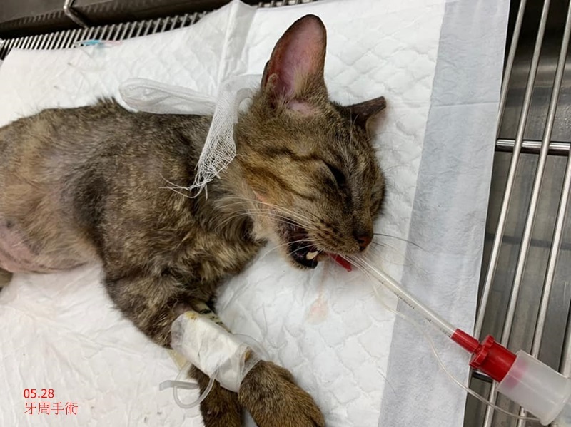 虎生於5/28進行牙周手術,全口拔牙,術後住院觀察,今因手術傷口恢復良好、進食情況穩定,已可出院。