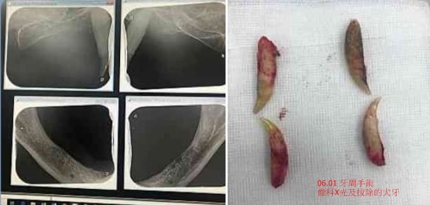 2020年5月17日大湖照護員發現噹噹出現嘴巴不適的情況,於5月20日將噹噹接至台北,5月22日就醫,檢查結果有牙周病及牙結石,血檢結果沒有異常,於6月1日進行牙周手術,術前拍攝齒科X光,共拔除了4顆犬牙,因傷口較深,且術後仍有滲血,疑似凝血功能不好,所以住院觀察一日,幸好隔天已不再流血,噹噹也有順利的吃飯,於是接回安養之家照顧。