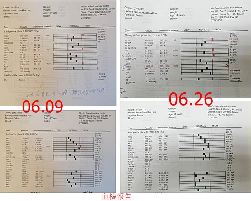 比較須要注意的是發炎指數GLOB6.0(6/9是5.3) 及AMYL2500(正常值500-1500) 。