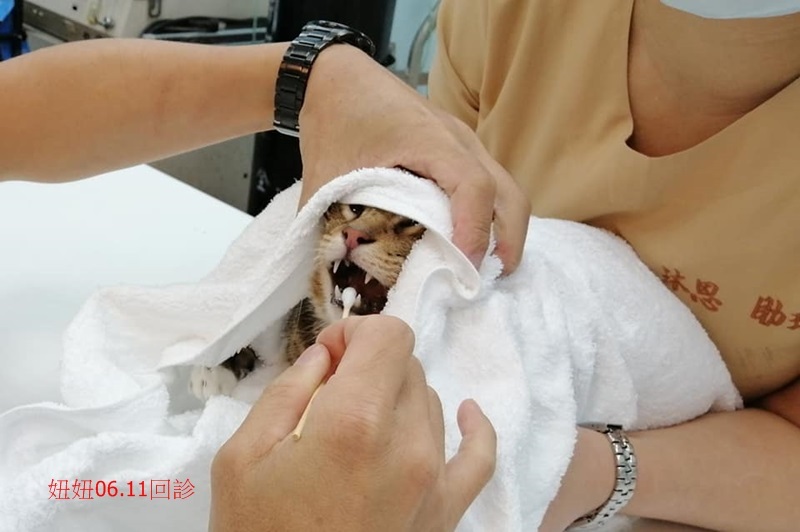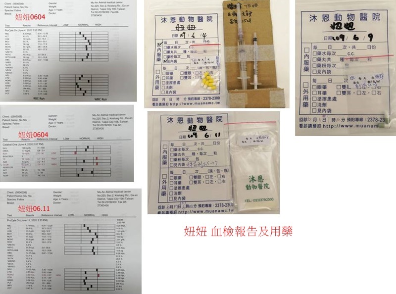 6月4日至沐恩檢查,後方牙齦紅腫流血,牙齒狀況還好,診斷是有牙齦炎及口炎,血檢結果大致正常,只有發炎指數應是口腔因素而較高,醫師建議進行牙周手術,術前先吃類固醇及止痛藥緩解妞妞的不適。