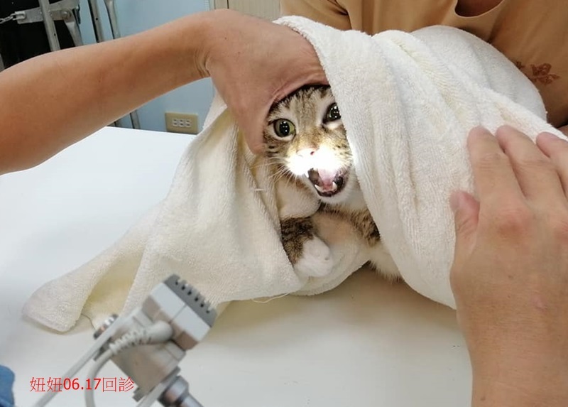 妞妞於6/4看診檢查口腔,後方牙齦紅腫流血,診斷是牙齦炎及口炎,牙齒本身狀況還好,已安排牙周手術,術前先吃止痛及類固醇治療,今回診追蹤用藥效果。