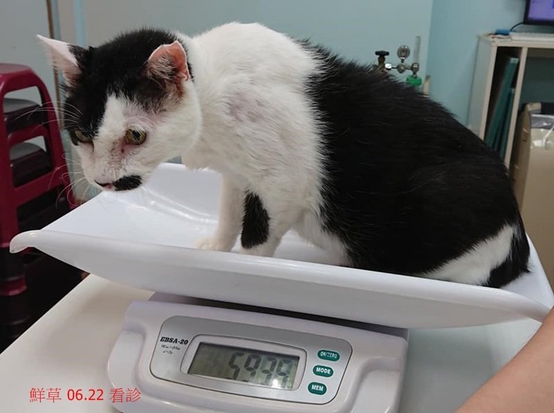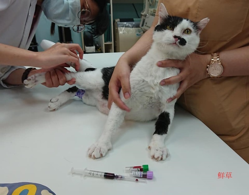 鮮草的健康狀況很不好,口腔情況不佳進行牙周手術全口拔牙,為治療口炎開始施打干擾素,肝指數過高須每天服用肝藥,在2019年12月,血糖指數升高 開始服用降血糖藥物,早晚固定時間給定量食物及打胰島素針劑,每周回診追蹤血糖變化、住院進行血糖曲線監測,又因抵抗力較差,皮膚發炎須吃魚油改善,歷經數個月的漫長治療,現在血糖已恢復正常、皮膚狀況也漸有改善,已可逐漸延長回診時間。