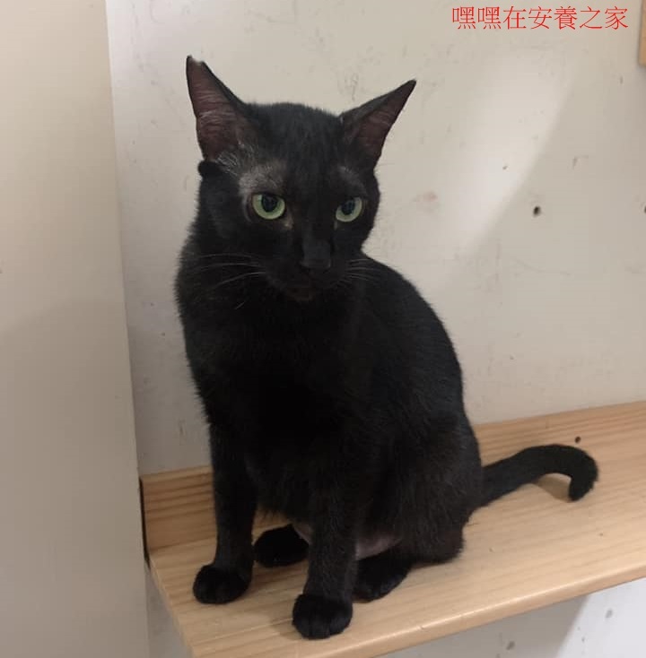 嘿嘿是某日出現在車流量很大的北市仁愛路圓環,因個性親人,身上疑似有皮膚病問題,民眾擔心他的安危因此請求協會協助,工作人員前往誘捕帶回安置,本猜想如此乖巧貓咪或許是家貓走失但掃無晶片,在經過健康檢查皮膚治療後,便在安養之家住下及等待送養。