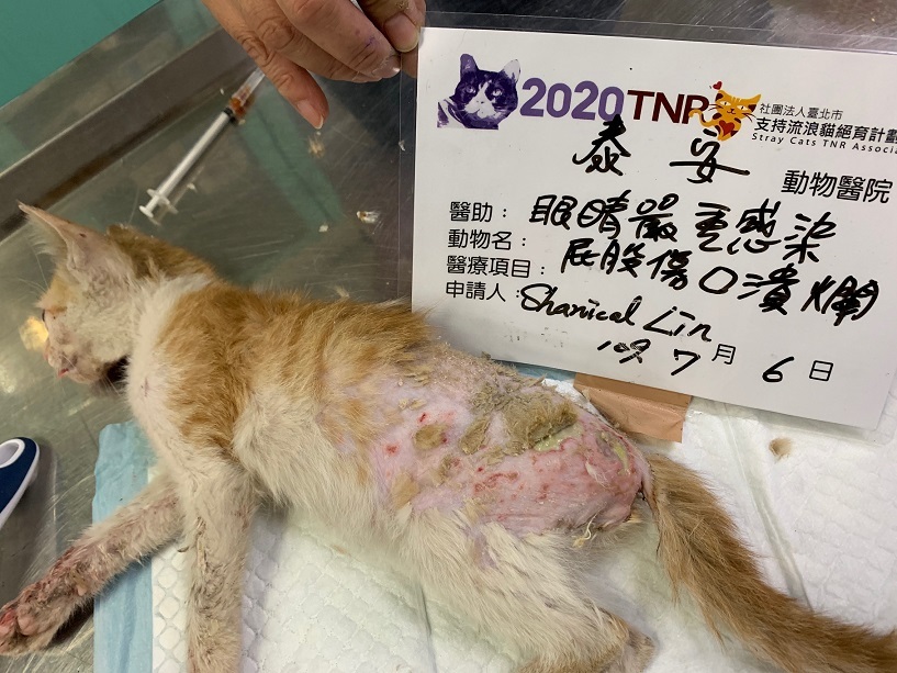 主題: 眼睛嚴重感染屁股潰瘍的橘白小貓 申請者姓名: shan-chiu Lin 花色: 申請日期: 2020-07-24 10:12:08 申請者部落格: 申請者臉書網址: shan chiu lin 所在縣市/合作醫院: 高雄市/泰安動物醫院 治療費用: 7450元 需求人數: 29人 已結案 (2024-05-31 18:14:10) 報名人員: 喵仔干 x16(已付款)、Yalin Chen(已付款)、Annie Chen(已付款)、Sysley Lin(已付款)、Eddie x4(已付款)、Chun Chun x6(已付款)、 候補人員: 動物病情說明: 索爾是近期在武營路出現的新小貓