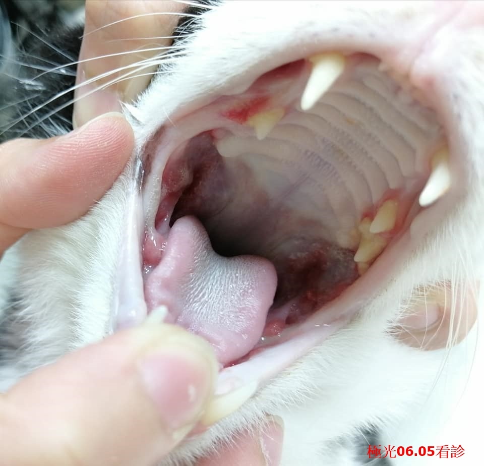 口腔檢查,左邊牙齦有化膿現象,感覺是口炎快發作,可先使用止痛滴劑一天2次緩解疼痛,左後嘴頰邊牙齒可能會需要拔除,類固醇用量需要與極光林家妤醫師討論,另外考慮是否開始使用干擾素計畫,若使用干擾素計畫會需再排手術拔牙,若不用干擾素,院長考慮先用注射皮下類固醇方式來緩和疼痛,需再跟蘇醫師彙整資訊討論。