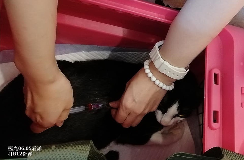 剛住進協會安養之家時,小賓不管吃什麼都是又吐又拉,身形極瘦、毛髮相當稀疏,協會工作人員準備食物花了極大心思,除了要兼顧營養熱量,又擔心他吃了會造成腸胃不適,也需要定期帶他回診檢查,根據回診情況再做飲食照護的調整,小賓的用藥多樣,有施打B12針劑使紅血球穩定,因吸收不好,經常拉肚子、脹氣,平時除了要服用抗生素、打皮下、吃制酸劑及提升腸道機能的益生菌和大量酵素。