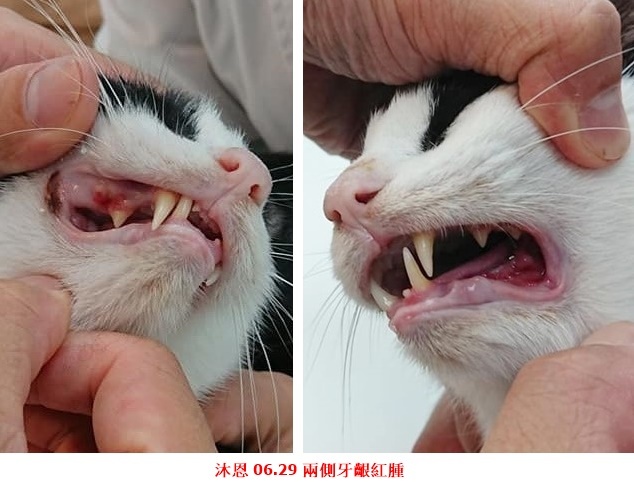 術後的恢復情況良好,但牙齦紅腫並未完全消緩,6月時口腔左邊紅得較嚴重,因此約診沐恩醫院檢查,檢查結果牙齦有化膿現象,感覺是口炎快發作了,醫師認為需再進行牙周手術及考慮使用干擾素治療口炎,因另一種治療口炎的類固醇,小賓以往的反應相當不好,會造成消化道的嚴重不適,目前就等待牙周手術後再評估治療口炎的方式。