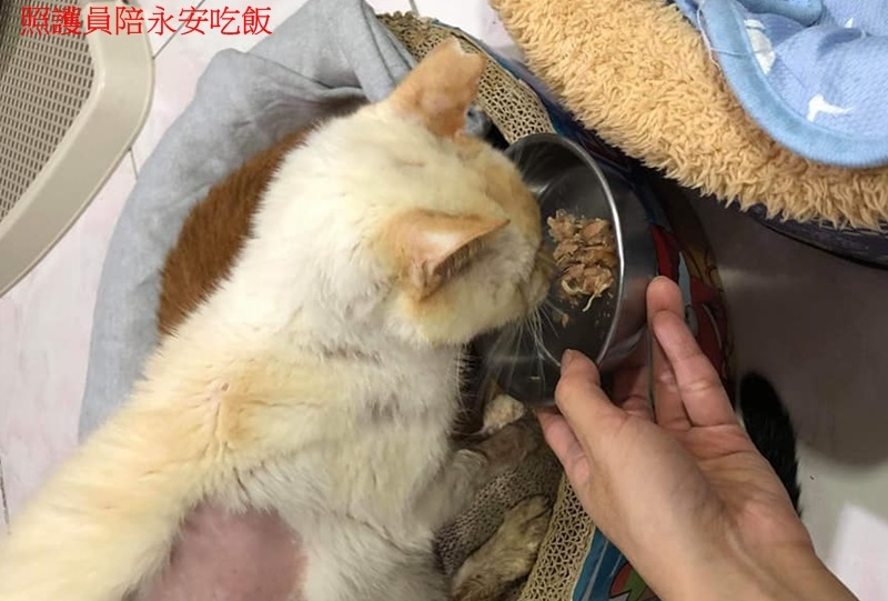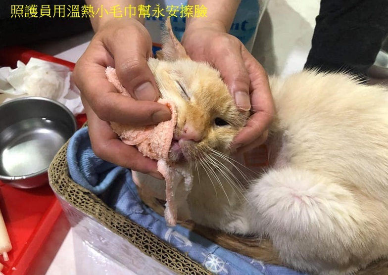 永安的腎臟及免疫系統都有很嚴重的問題,牙口情況也很不好,對食慾造成很大影響,但永安的腎臟狀況太差,麻醉進行牙周手術或食道餵管都有極大的風險,因此先靠用藥減緩他的不適,除了定期的回診,照護員要為永安打皮下輸液、餵吃類固醇、抗生素、降磷藥、打造血針、灌食,但永安的健康情況一直不穩定,幾度住院治療。