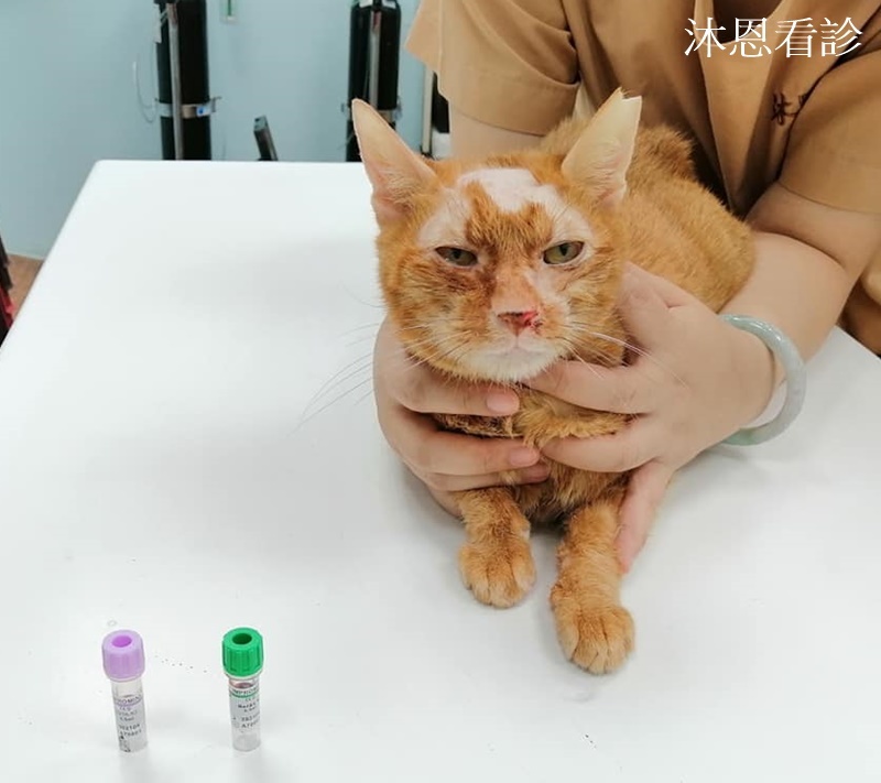 大方與樣來自北投的幾隻貓咪,都有著自體免疫疾病、腎衰、貧血,除了定期的回診還幾度因病情嚴重住院,平時在安養之家,除了每天早晚吃藥、打皮下,食慾不好時,要一天數次灌時以維持體力。