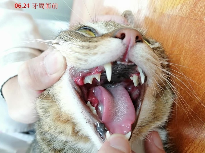 妞妞的口腔檢查,整體而言是有嚴重的口炎、牙齦炎與齒吸收病。