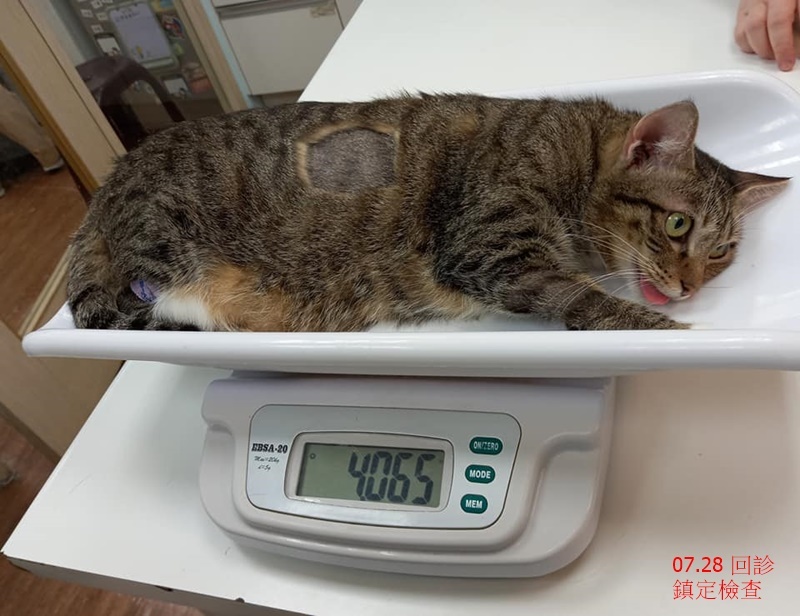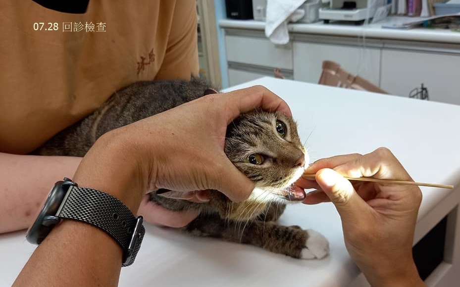7/7 醫師告知,妞妞口腔採樣病理報告,顯示有腫瘤的可能性,報告中的腫瘤類型,以類固醇治療效果不錯,如果類固醇沒有達到預期效果,就要再進行採樣,因為6/24那日只取一點採樣,須再另採它點送驗,妞妞再於7月28日回診追蹤口腔及血檢,口腔情況好很多、血檢也沒有異常,醫師認為口腔裡的小囊泡應該並非腫瘤,妞妞的情況已穩定,可以不須再回診,這樣讓大家放心多了,妞妞在台北安養之家再觀察幾日後,食慾精神都非常好,為了讓她更放鬆安心,便將她帶回熟悉的大湖安養之家。