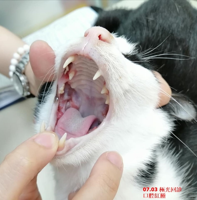 小賓於7/24在沐恩進行牙周手術,今天查看傷口恢復及口腔紅腫的情況。