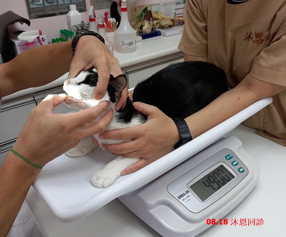 在協會全力盡心的照顧之下,現在體重已增加很多,毛髮也變得濃密漂亮,2020年3月初小賓出現吃東西會用手撥嘴、大叫,察看口腔發現牙齦很紅腫,於3月20日至沐恩進行牙周手術,拔除5顆狀況差的牙齒,但小賓的牙齦還是有一些紅腫未完全消除,至6月時口腔左邊又紅得嚴重,至沐恩醫院檢查結果是牙齦化膿,感覺是口炎快發作,便於7月24日二度進行牙周手術,將牙齒全部拔除並採樣做病理報告以評估使用干擾素治療,術後小賓恢復情況良好,因為嘴巴的不適減輕,食慾也變得更好,8月18日再度回診沐恩檢查,縫線雖然還有幾處未掉,但傷口復原良好,雖然病理報告顯示小賓是確定有口炎,但在牙周術後,口腔的紅腫己乎已完全消退,醫師認為這樣就可暫時不需要使用干擾素的治療,先觀察一段時間。