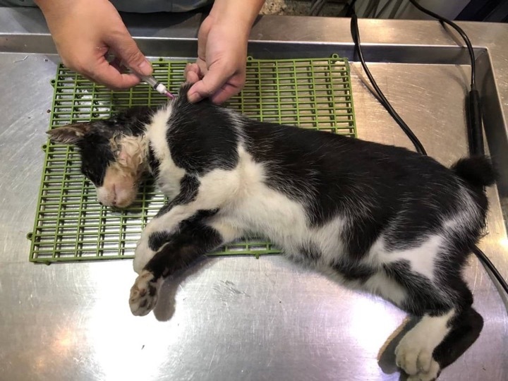 最後趁貓咪吃飯時抓進籠裡送醫治療