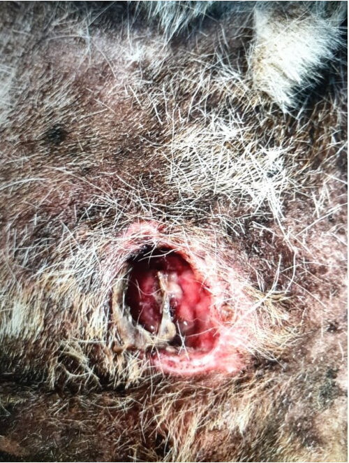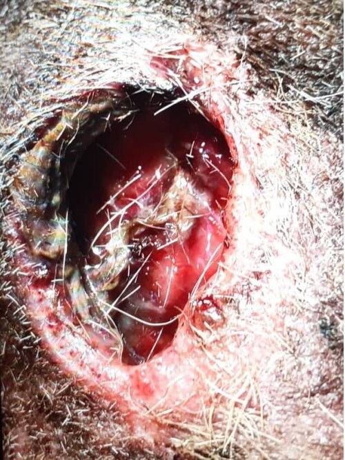 黑白被咬傷在隱密處(睪丸附近)