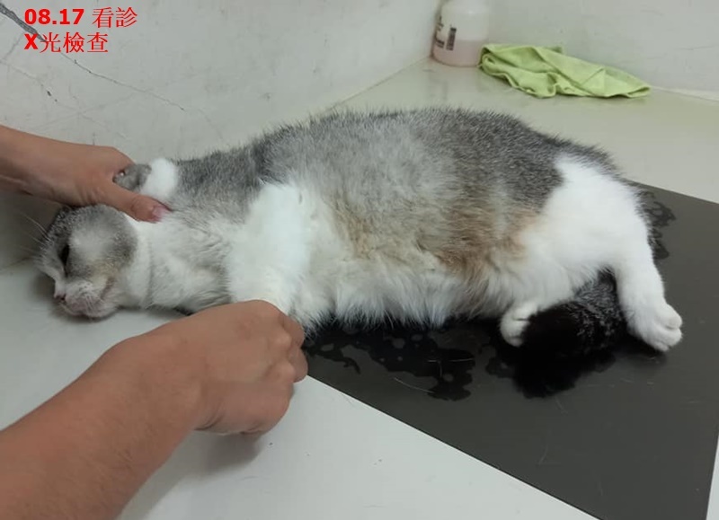 自開始吃心臟用藥至今,加上在安養之家的好環境,小甜甜的心臟情況一直都很穩定,照護員也每天細心觀察小甜甜的日常情況,在2020年3月發現側腹明顯變鼓脹,有較多嘔吐情形,約診進行X光檢查發現是胃部有很多空氣,研判是小甜甜很愛呼嚕,加上品種貓咪的臉部構造,容易有鼻水、張口呼吸,因而口部吸入較多空氣,也因此容易造成嘔吐,醫師開消脹藥,並持續追蹤回診進行X光檢查脹氣情形。